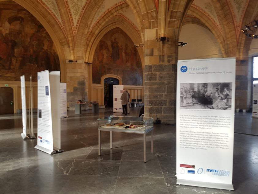 Die Reichspogromnacht bildet den historischen Orientierungspunkt der Präsentation, die jüdisches Leben vor, während und nach der von den Nationalsozialisten geplanten und durchgeführten Verfolgungs- und Zerstörungsaktion thematisiert. Die Ausstellung ist in sechs Grundthemen (Synagogengemeinde, Tuchindustrie, Handwerk, Handel, Akademische Berufe und Landjudentum) gegliedert, die zusammen einen Überblick über das Leben der jüdischen Gemeinde in Aachen geben. Jedes Grundthema behandelt einen kulturellen und wirtschaftlichen Themenschwerpunkt und besteht aus bis zu vier ausgewählten Biografien, die repräsentativ für das jeweilige sozio-ökonomische Milieu stehen und das eigentliche Zentrum der Ausstellung bilden.